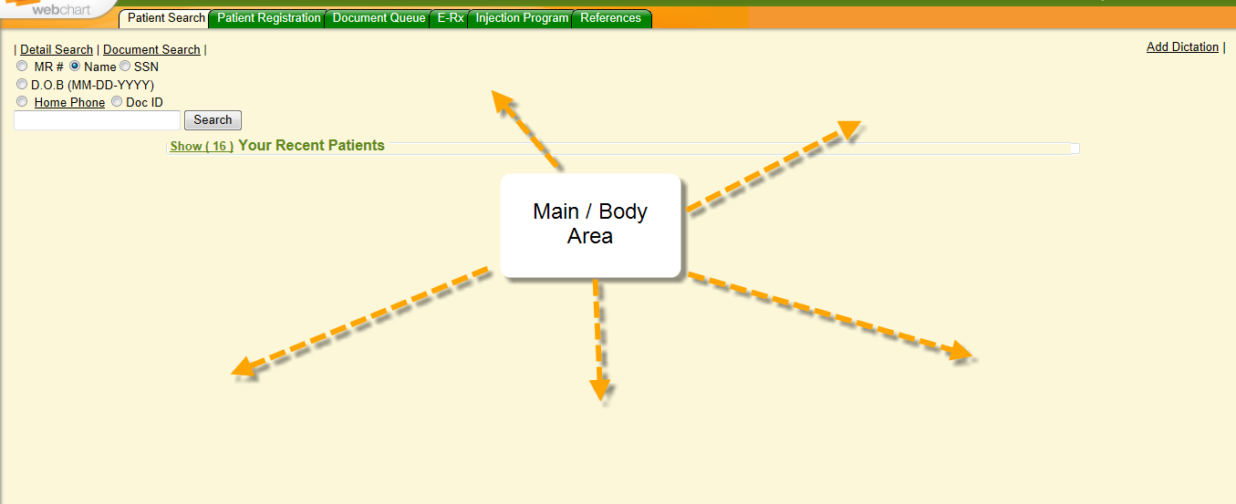 Background Color For "Custom", controls the outside frame – above tabs, below sidemenu, bottom status line of WC .For "miEHR", controls below the sidemenu tabs and the status bar at the bottom.